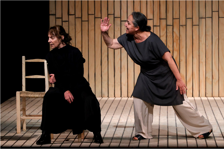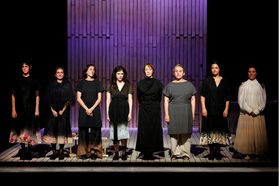 Desde el primer momento, la puesta en escena de Pérez instala al espectador en un espacio marcado por el encierro. Sobrio y cerrado, el diseño parece atrapar el aire dentro de las cuatro paredes, convirtiendo el escenario en una atmósfera densa que materializa físicamente la opresión y la falta de libertad de las protagonistas